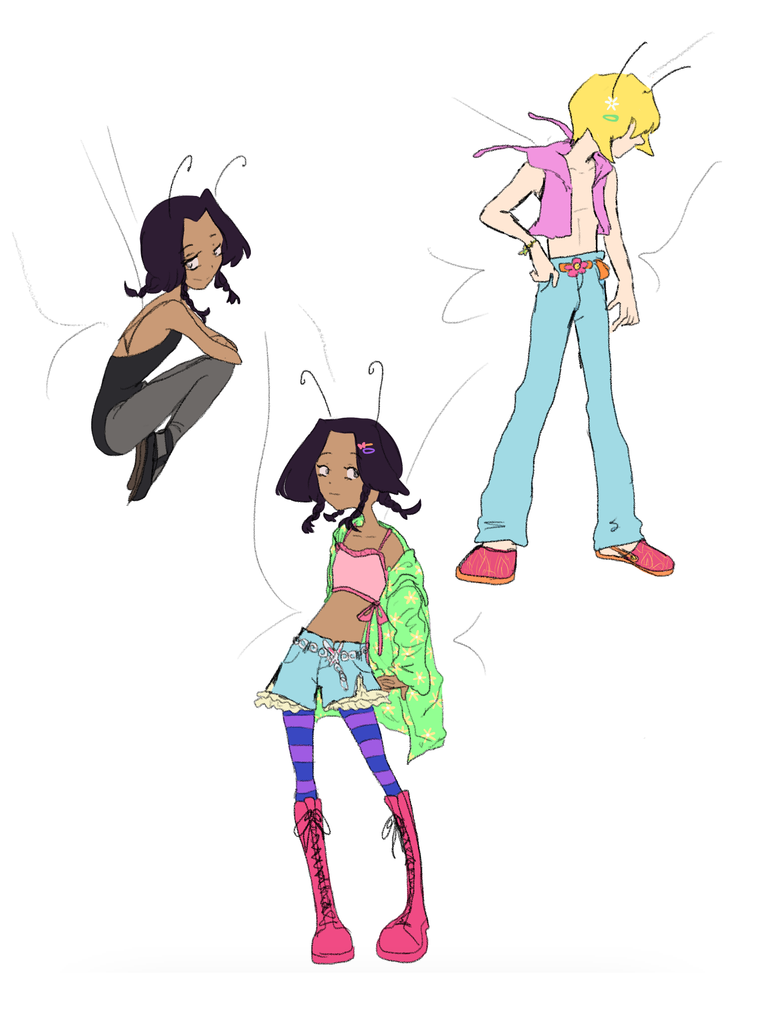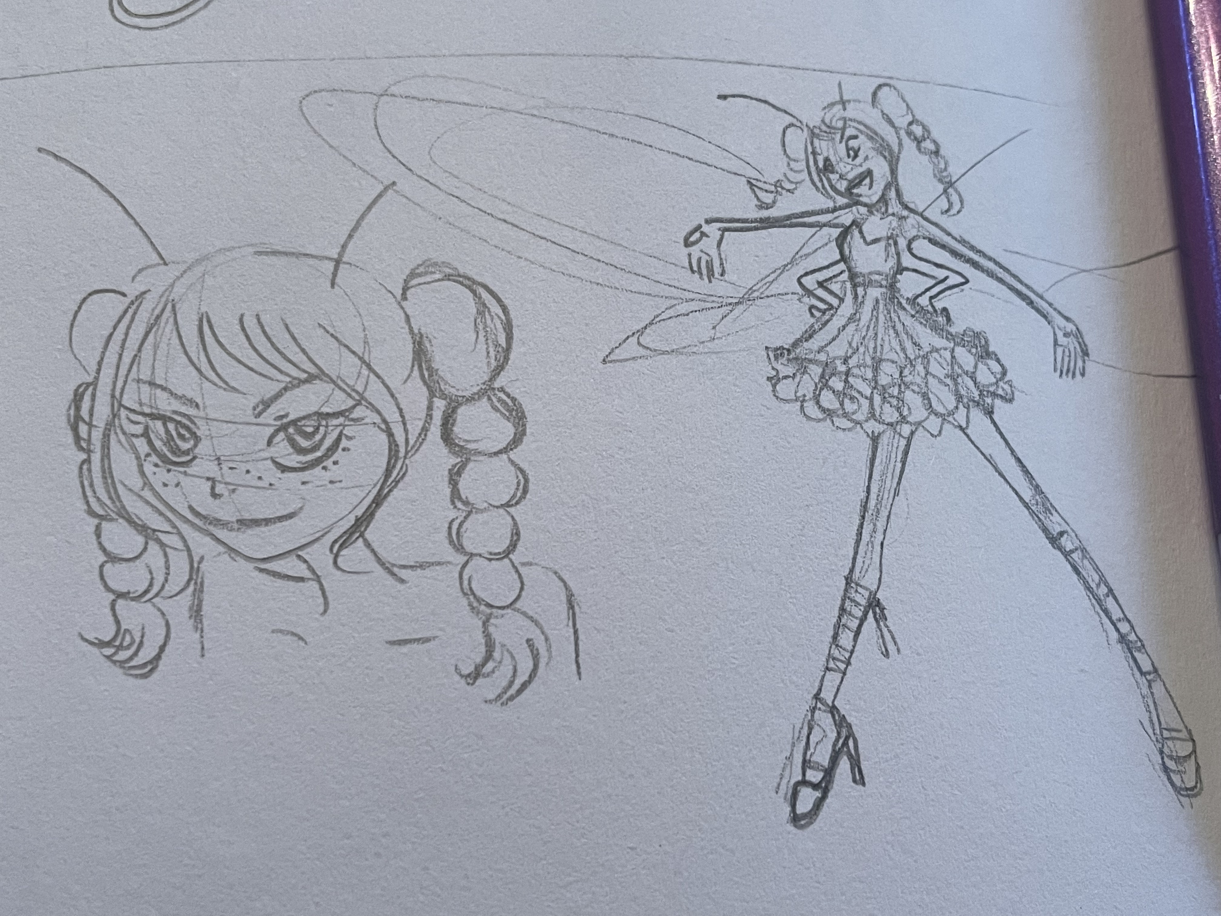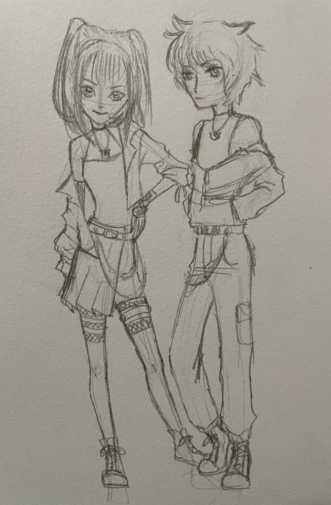 My sketchbook holds many ideas from original character designs to fashion or costume ideas. Most are sketched traditionally, others are sketched digitally. Either way, they both depict my ideas in their earliest forms.